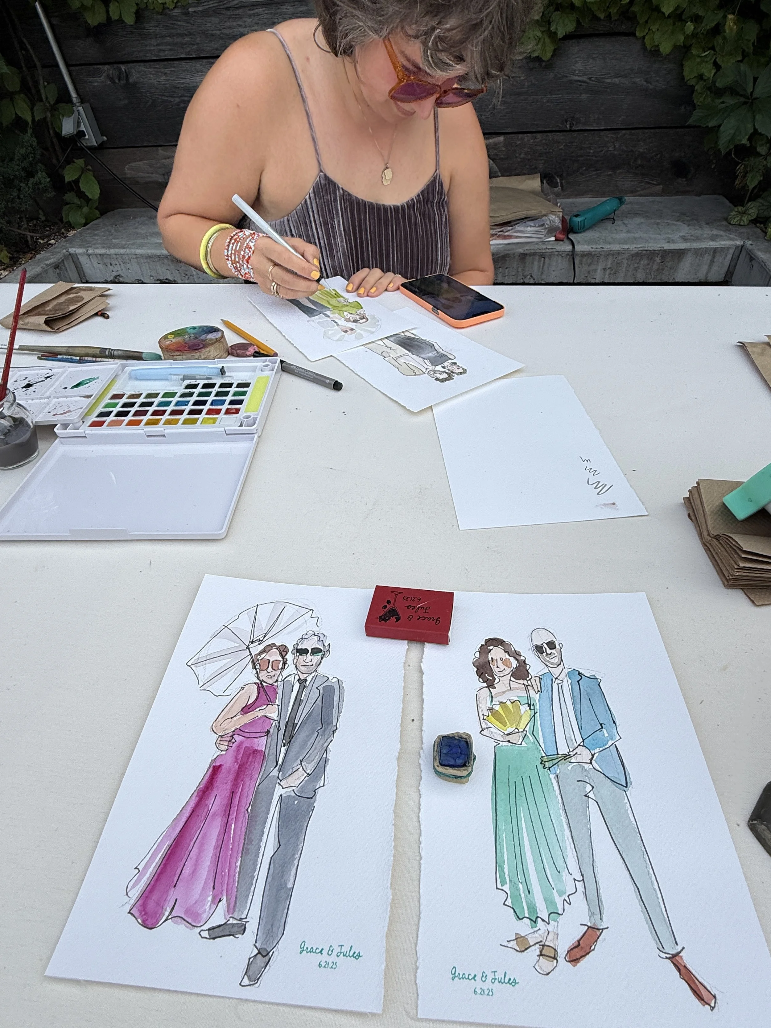 Available for weddings, fundraisers and events. Live watercolor portraits done while the guests watch! Guests walk away with an original watercolor portrait.